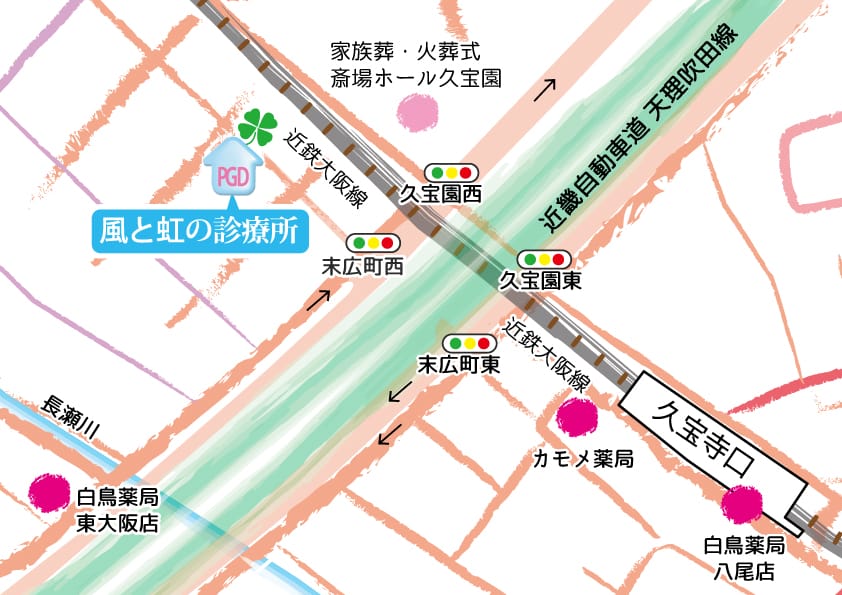 近鉄大阪線久宝寺口駅から徒歩5分の住宅街にあります。